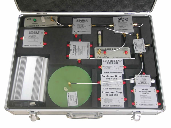 AT2000 RF射頻實驗訓(xùn)練模塊,是由平面螺旋天線、寬帶射頻放大器、混頻器、中頻放大器、射頻調(diào)制器、VCO壓控振蕩器、功率分配器、濾波器(包括高通、低通、帶通、帶阻)。固定衰減器、定向耦合器、函數(shù)發(fā)生器、開槽傳輸線、反射電橋、終端負(fù)載、短路器、電源等21個單元模塊組成,可方便地組合成射頻發(fā)射系統(tǒng)和射頻接收系統(tǒng),各單元模塊包含獨立的實驗電路,配合射頻實驗指導(dǎo)書,支持實驗?zāi)K構(gòu)成多種射頻實驗,使用戶更方便,更直觀獲取射頻系統(tǒng)的基本原理,工作方式和基本結(jié)構(gòu),適用于高等院校、科研單位的通信、雷達、導(dǎo)航、測控等專業(yè)實驗室使用。
