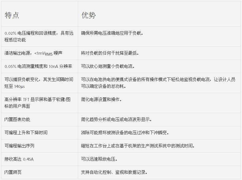 - 配合精密測量的清潔電源 2280S 系列電源提供高達(dá) 192W 的低輸出噪聲功率和優(yōu)異的負(fù)載電流測量靈敏度。內(nèi)置繪制功能允許監(jiān)視漂移等趨勢。這些電源提供高達(dá) 6? 的數(shù)字分辨率,可放心地檢定負(fù)載電流的微小變化。四個負(fù)載電流測量范圍支持以數(shù)字萬用表質(zhì)量精度測量設(shè)備的滿負(fù)載電流、待機(jī)模式電流和睡眠模式小電流。