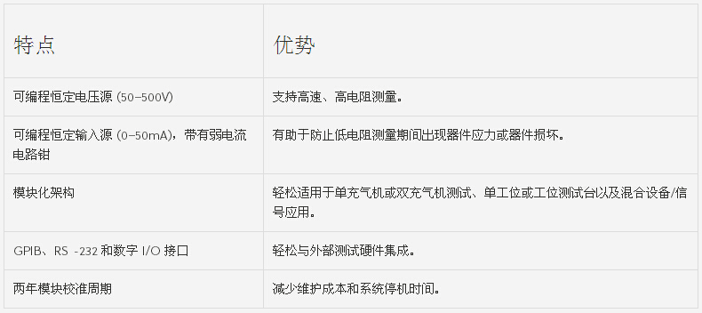 這些高電壓、多通道電阻測量解決方案可加快并簡化安全氣囊充氣機(jī)的電氣檢查以及各種其他汽車電氣測試應(yīng)用。它們將測量絕緣電阻和導(dǎo)體通斷性所需的所有源、測試和信號路由功能集于一個緊湊機(jī)箱中,經(jīng)濟(jì)實惠。存儲器碼型測試定序器允許主機(jī)存儲和執(zhí)行預(yù)編程測試序列,以確保高測試吞吐量。