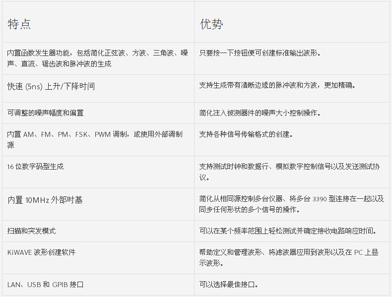 3390型50MHz任意波形/函數(shù)發(fā)生器功能和特點: