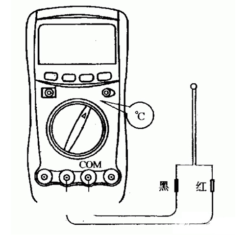 ②將功能里程開(kāi)關(guān)置頭的測(cè)溫端置于被測(cè)物體表于C溫度測(cè)量檔,將溫度探面或內(nèi)部。