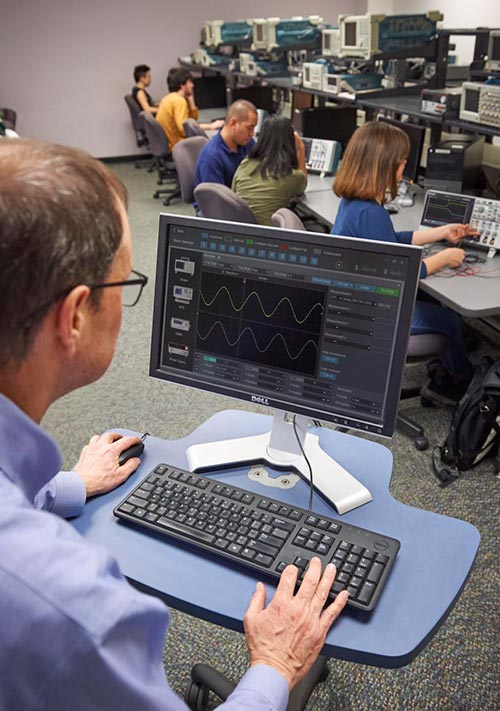 全新可配置的HelpEverywhere幫助系統(tǒng)為挑戰(zhàn)性的菜單提供了各個(gè)選項(xiàng)解釋,若不需要某種功能則可以關(guān)閉;實(shí)驗(yàn)室教授可以從泰克課件資源中心下載學(xué)習(xí)課程,也可以上傳實(shí)驗(yàn)室練習(xí),與全球教育界共享;老師遠(yuǎn)程監(jiān)測和控制儀器,為學(xué)生提供幫助,學(xué)生以無線方式分享和檢索測試結(jié)果,以電子方式提交實(shí)驗(yàn)。