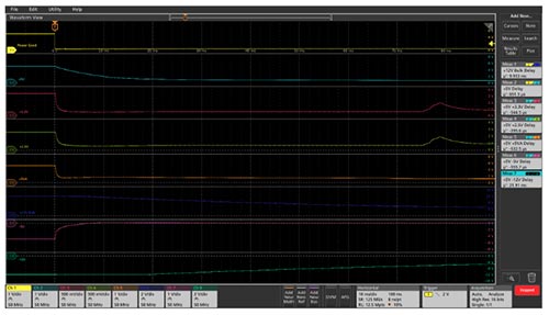 使用4通道示波器檢驗嵌入式系統(tǒng)中的電源線定時可能會非常耗時,但這是大多數(shù)工程師必須要做的事。在我們與示波器用戶溝通時,評估開機順序和關(guān)機順序是工程師想要4條以上通道的常見的原因之一。