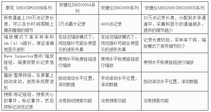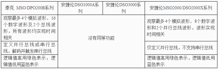 泰克MSO/DPO2000B系列示波器對比安捷倫DSO/MSO多系列