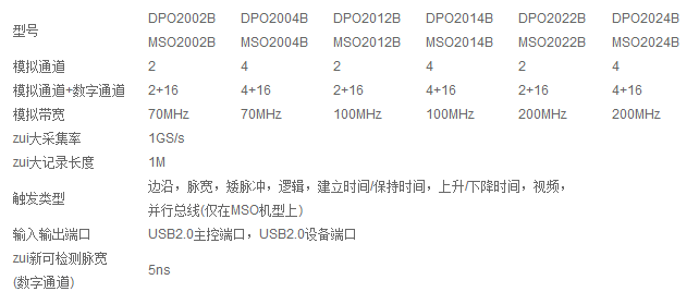 MSO/DPO2000B系列混合信號示波器產(chǎn)品型號:
