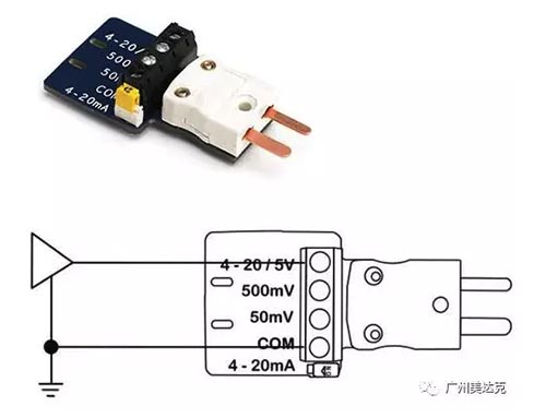 1、連接測試電路。將電路的負極連接至接線端子板的COM端,將電路的正極連接到4-20/5V輸入端。無需焊接即可將導線連接接線端子板上。