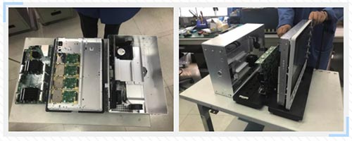 拆掉外殼。有益于散熱的鋁制金屬外殼,防塵塑料外殼,機(jī)架金屬保護(hù)殼,三層保護(hù),更加安全牢固。金屬外殼上包含PVI插口,與電源插口。我們可以看到在Interface板上配備USB3.0插口,VGA,DVI,AFG輸出口等。