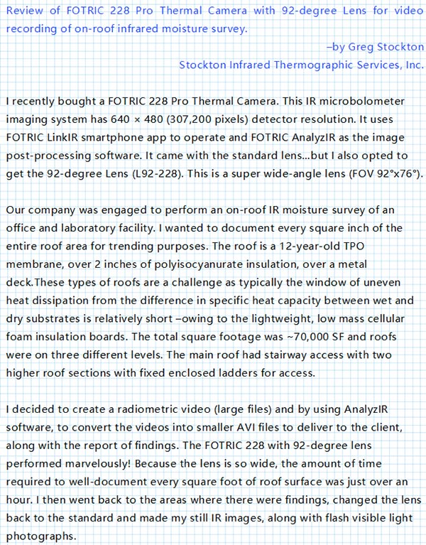 熱像儀Fotric228 (帶92度鏡頭)在屋頂水分紅外檢測上的應(yīng)用介紹。