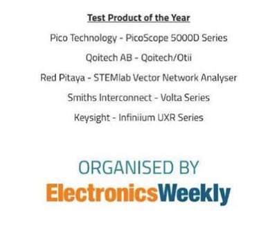 測試測量產品共有5家獲得提名,Pico Technology最終折桂