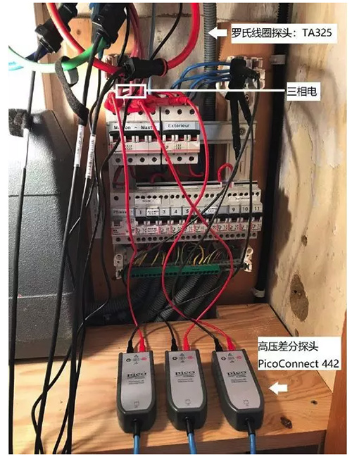今年夏天,英國(guó)比克科技的業(yè)務(wù)拓展部經(jīng)理Trevor Smith去法國(guó)度假的時(shí)候,發(fā)現(xiàn)他住的房子是三相供電的,這并不常見(jiàn)(科普一下,普通住宅一棟樓只需要單相電就可以滿足使用需求,大型的設(shè)施或者豪宅用電需求很大,會(huì)提供三相供電,并把它們分配給不同的用電設(shè)備),作為一名敬業(yè)的比克人,Tevor當(dāng)然會(huì)好好探查一番,神奇的是他竟然隨身帶了幾套Pico測(cè)試設(shè)備。于是我們又多了一次應(yīng)用案例:安全起見(jiàn),Trevor 先把電閘拉了,然后拿出一臺(tái)PicoScope4444高分辨率示波器,通過(guò)三根PicoConnect442 1000V CATⅢ的差分探頭連到了配電箱的三相電上,這種探頭的工作等級(jí)可以用在固定安裝的供電設(shè)備上,接在保險(xiǎn)絲之前(也就是供電輸入的一側(cè))