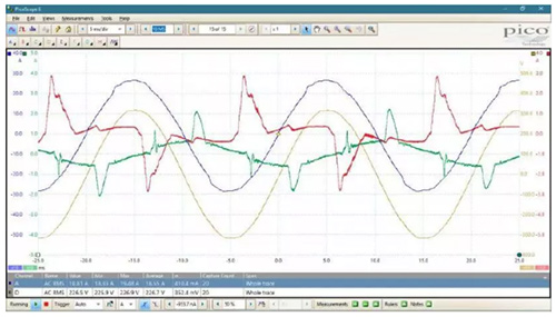 我們的四通道示波器,可以完美的測(cè)量三相電壓或電流,如果想要同時(shí)看電壓和電流信號(hào),就可以選擇八通道的PicoScope4824.