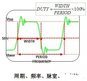 2)時(shí)間參數(shù):上升時(shí)間/下降時(shí)間,周期/頻率,脈沖寬度,占空比,時(shí)間差,建立時(shí)間/保持時(shí)間等
