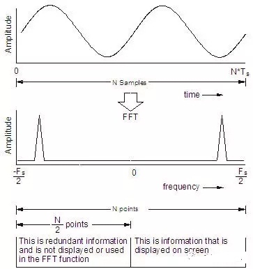 示波器FFT運(yùn)算是把存儲(chǔ)器中的N點(diǎn)的波形轉(zhuǎn)換到N/2點(diǎn)的頻譜內(nèi)容,轉(zhuǎn)換后的頻率范圍是: