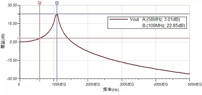 下圖為用該等效電路仿真出的頻譜特性曲線: