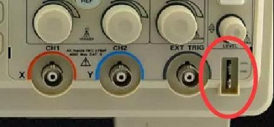 上圖中,紅黃綠藍(lán)色的圓圈狀東西,就是色環(huán),你可以看到,探頭上已經(jīng)套了兩個藍(lán)色的。這個色環(huán)是塑料材質(zhì),一端開口,可以隨時卸下來換上別的顏色。色環(huán)不會對被測電路產(chǎn)生影響,只起輔助識別的作用,用在示波器有多個探頭的場合?聪聢D示波器的探頭插口,有木有看到插口有兩種顏色?
