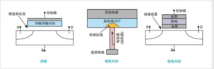 電子行業(yè)日益擔(dān)心浮柵NVM(非易失性內(nèi)存)不能繼續(xù)以每比特更低成本來(lái)提供更高的存儲(chǔ)功能,而每比特更低成本則是驅(qū)動(dòng)NVM市場(chǎng)發(fā)展的根本性要求。浮柵方法可能會(huì)“撞墻”,意味著替代技術(shù)的研究工作已經(jīng)變得日益關(guān)鍵。科學(xué)家們正在研究可以替代FG NAND技術(shù)的NVM備選方案,包括相變內(nèi)存(PCM/PRAM)、電荷俘獲內(nèi)存(CTF/SONOS)、電阻內(nèi)存(ReRAM)、鐵電內(nèi)存(FeRAM)和磁阻內(nèi)存(MRAM) 等。