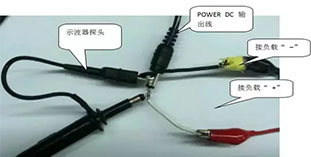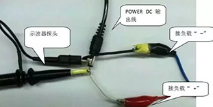 采用最原始的方式,用示波器探頭直接夾在power的輸出線上面,觀察示波器上紋波的波形。