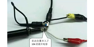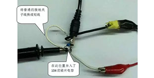 因為示波器探針在普通的情況下也等于一根天線,可以接收一些外面的干擾雜訊。影響實際的測試效果。需要在最外端加入旁路電容,將高頻干擾雜訊濾除。