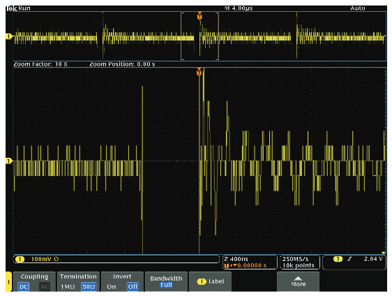 圖2. 顯示了MDO4000C示波器的諧振現(xiàn)象(分辨率為8位)