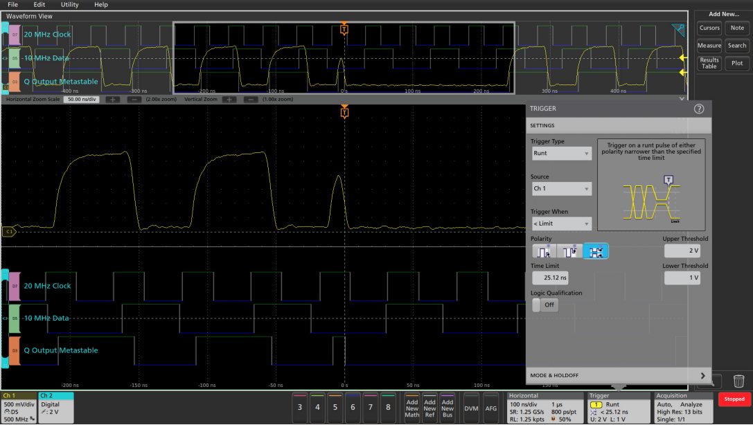 在上一個例子中,建立和保持觸發(fā)器用于觸發(fā)觸發(fā)器的輸入。另一種方法是觸發(fā)設(shè)備輸出的信號錯誤,并捕獲輸入信號進行分析。