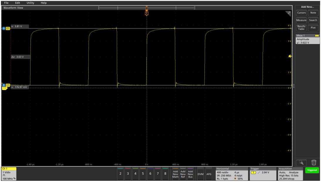 圖1.使用自動(dòng)測(cè)量快速驗(yàn)證邏輯信號(hào)幅度。