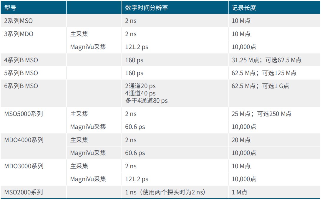 一個(gè)重要的MSO采集規(guī)格是用于捕獲數(shù)字信號(hào)的時(shí)間分辨率。采樣率在不同的MSO型號(hào)之間有所不同。在進(jìn)行建立和保持時(shí)間測(cè)量時(shí),了解時(shí)間測(cè)量分辨率非常重要。