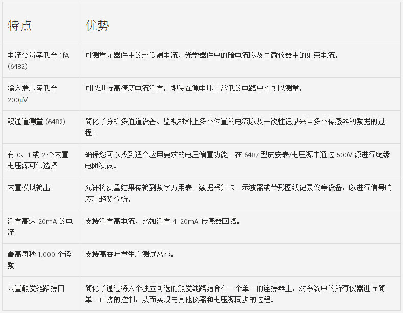 經(jīng)濟(jì)實(shí)惠的 5? 位 6485 型皮安表可以測(cè)量 20fA 至 20mA 的電流,速度高達(dá)每秒 1000 個(gè)讀數(shù)。6487 型皮安表/電壓提供比 6485 更高的精度和更快的上升時(shí)間、一個(gè) 500V 源以及一種與電容設(shè)備配合使用的阻尼功能。6482 型雙通道皮安表/電壓源提供比 6485 型或 6487 型更高的測(cè)量分辨率和雙獨(dú)立 30V 電壓偏置源。