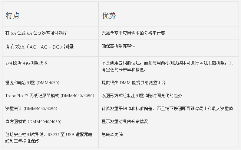 - 5? 位 DMM4020 和 6? 位 DMM4050 與 DMM4040 多功能臺式萬用表具備全方位功能,可滿足工作臺上或系統(tǒng)中的最苛刻測量要求。這些數(shù)字萬用表執(zhí)行的功能是您期望多功能 DMM 中具有的,包括測量電壓、電阻、電流和頻率。DMM4050 增加了溫度和電容功能,通用性更高。