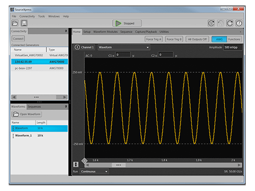 • 基于 PC 的軟件,用于任意波形發(fā)生器的控制與模擬 從 PC 中獲取,使用專為滿足您的需要而設計的工具創(chuàng)建波形 在 PC 中,控制一個或多個源儀器,例如 AWG70000 從一個應用程序控制一個或多個 AWG70000 儀器 遠程加載和播放波形 不需要學習新的應用程序!SourceXpress? 的外觀和感覺與 AWG70000 儀器相同